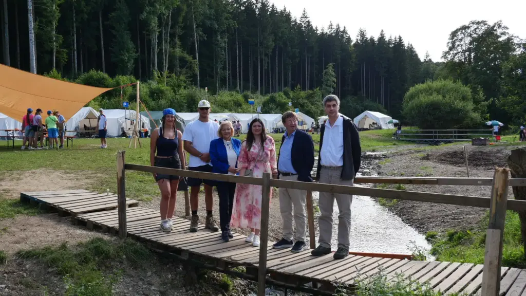 Beim gemeinsamen Fototermin auf dem Lagerplatz verbreitet sich schnell begeisterte Stimmung. Der seit Tagen anhaltend sonnige Himmel trägt sein Bestes dazu bei und lässt die monsunartige Aufbauphase schon fast wieder vergessen. „Ich bin überwältigt, was die Jugendlichen hier jedes Jahr auf die Beine stellen!“ äußert sich Rosemarie Miller-Weber von der Familie Miller-Weber Stiftung beim Betreten des Platzes. Durch das wuselige Treiben beim Spiel „Auf Achse“ führen Lagerleiterin Emma Kiebler und Lagerleiter Franz Schaden die Gäste zum neuen Zelt. „Wir sind so dankbar, dass wir mit diesem neuen Zelt weitere Kinder im Zeltlager aufnehmen können. Viele Zelte sind mittlerweile in die Jahre gekommen, die wir nach und nach ersetzen müssen“, bedankt sich die 18-jährige Lagerleiterin.